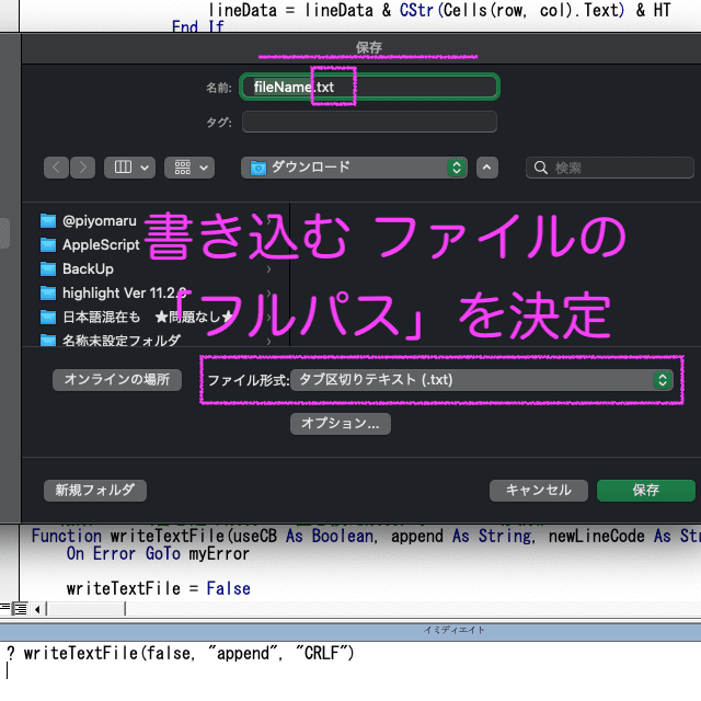 WriteTextFile関数の利用方法(イミディエイト ウィンドウからテスト可!)